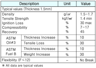 High quality non-asbestos fiber and excellent heat/oil resistant