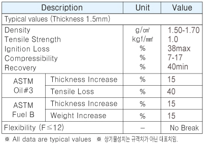 asbestos gasket sheet with a oil/fuel-resistant property. It shows low