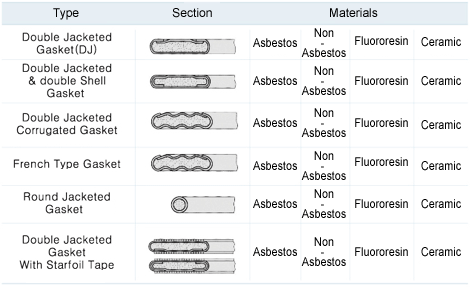 This is a metal-covered gasket whose fillers are non-asbestos panel, graphite sheet and Teflon.